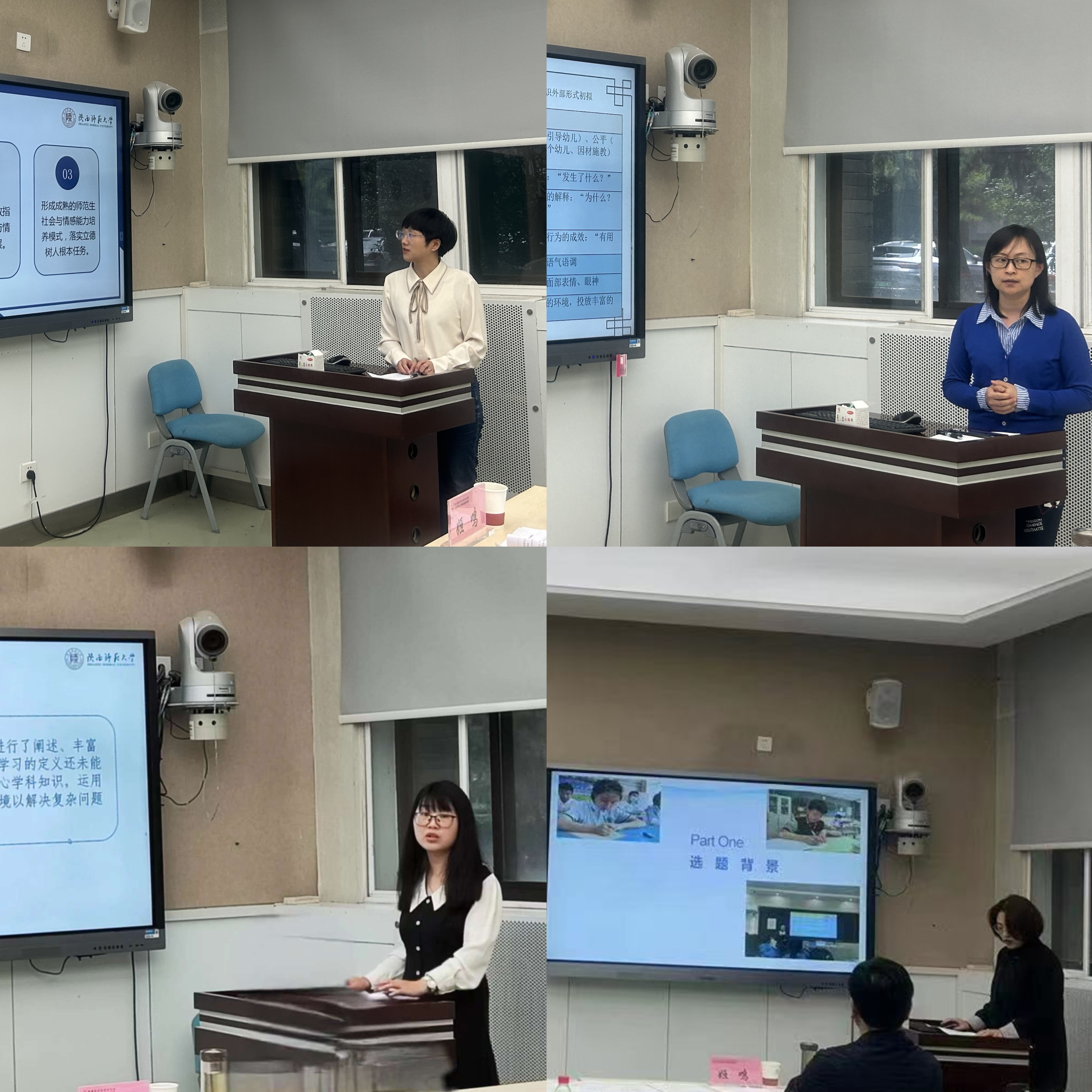 会上,best3652022年研究生创新基金资助项目博士生一般项目负责人辛爽、蔡李娜、唐科和葛晓穗四位教育博士生,分别汇报了《思维地图在聋生英语课堂教学中的实践探究》《指向核心素养的中学英语课堂深度学习路径研究》《立德树人视域下师范生社会与情感能力培养研究》《基于师幼互动的幼儿教师实践性知识发展研究》课题的研究设计和思路。
