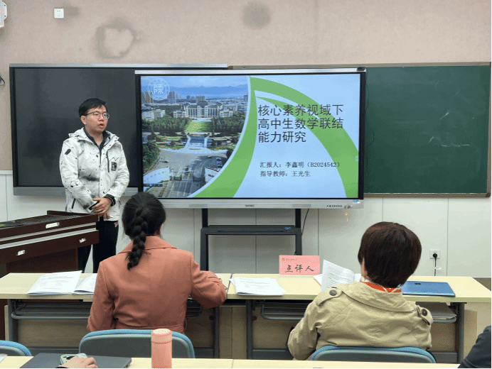 会上,吕海泽、李鑫明、马探军、王春婷四位项目负责人分别对《具身认知理论视域下小员工量感素养评价模型构建研究》、《核心素养视域下高中生数学联结能力研究》、《人机协同教研对普通高中青年教师教学反思能力》、《小学数学教师新课标实施水平的影响因素与对策》等课题展开汇报。围绕项目的选题背景、理论框架、研究方法及创新亮点等核心内容进行全面阐述。