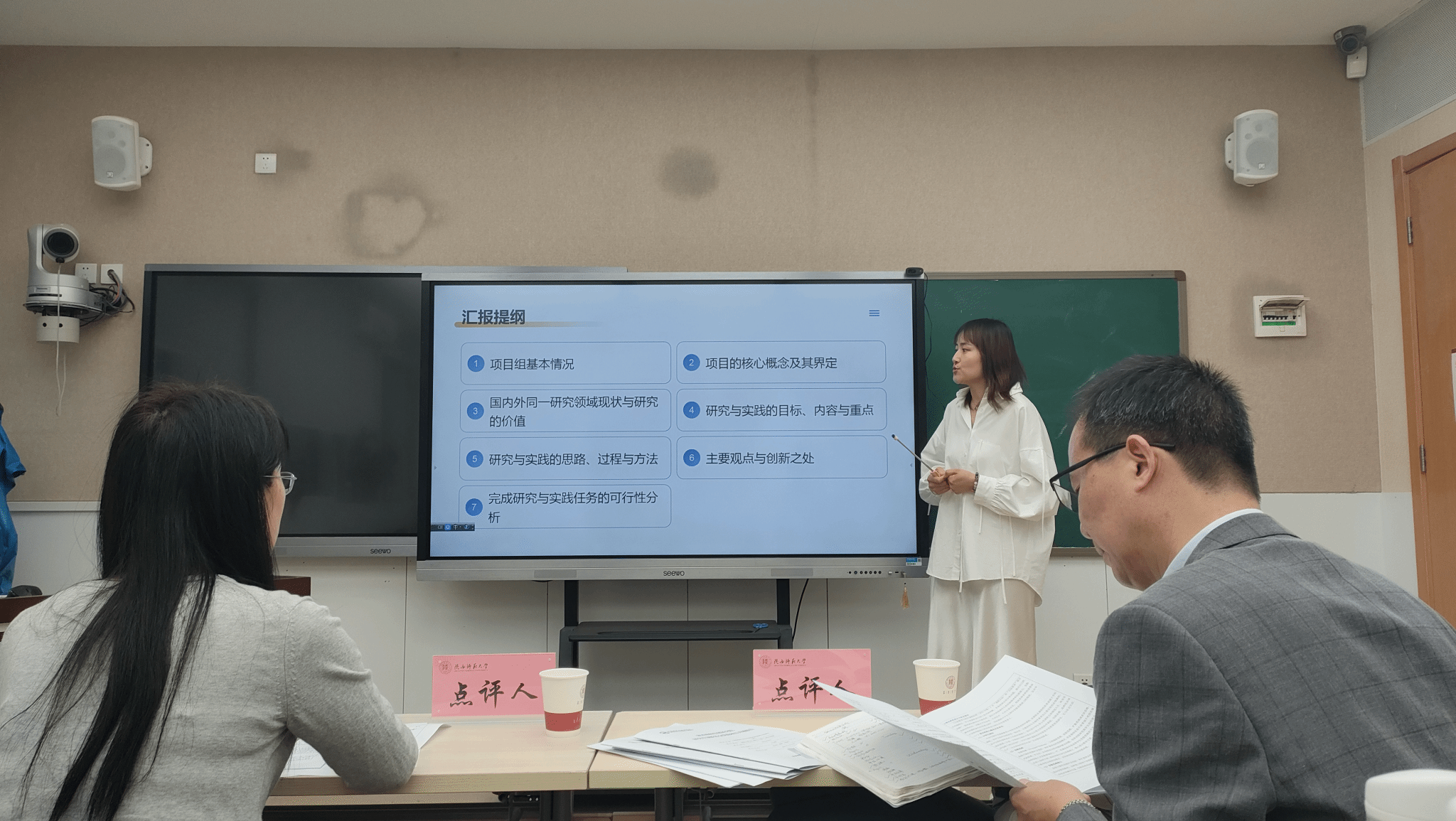 会上,王立儒、来月、田苗苗、张凤霞四位项目负责人分别对《计算思维融入高中科学课堂的理论构建与实践路径研究》、《西安市中员工生物学发散思维能力现状与培养的探究》、《小学数学教学融合思政教育的路径与创新研究》、《初中数学跨学科项目式学习研究》等课题展开汇报。围绕项目的选题背景、理论框架、研究方法及创新亮点等核心内容进行全面阐述。