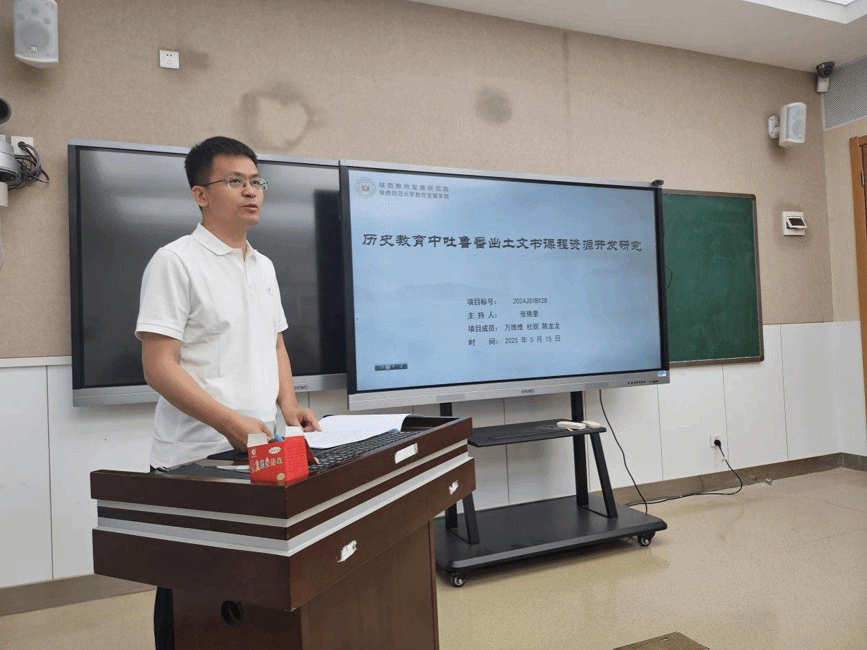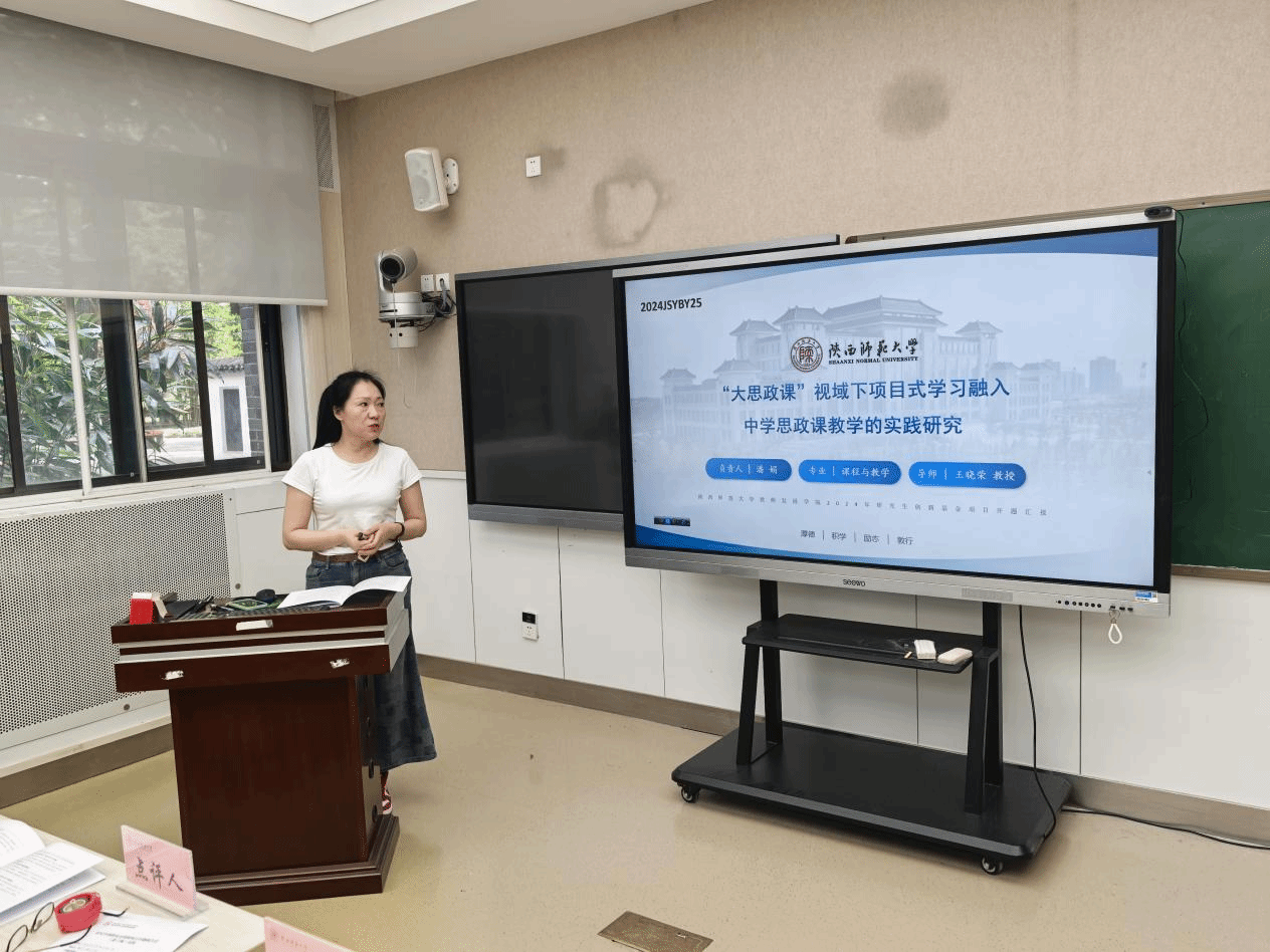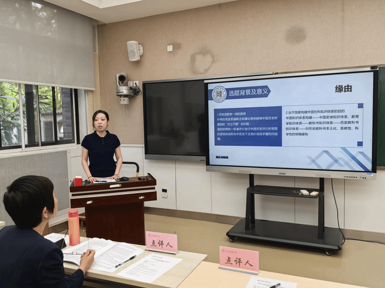 会上,白悦萌、卞润梓、张艳奎、赵慧四位同学依次对《新中国中学历史教科书知识体系建构研究》《博物馆资源与中学历史教育的深度融合研究——以陕西省为例》《历史教育中吐鲁番出土文书课程资源开发研究》《“大思政课”视域下项目式学习融入中学思政课教学的实践研究》等进行了开题汇报。汇报内容涵盖选题背景与意义、核心概念界定、研究思路与方法、预期成果规划等关键环节,既有对历史教育资源开发的一系列探索,也有对思政课程教学模式的创新性思考,充分展现研究者对基础教育热点问题的敏锐洞察与多维视角。