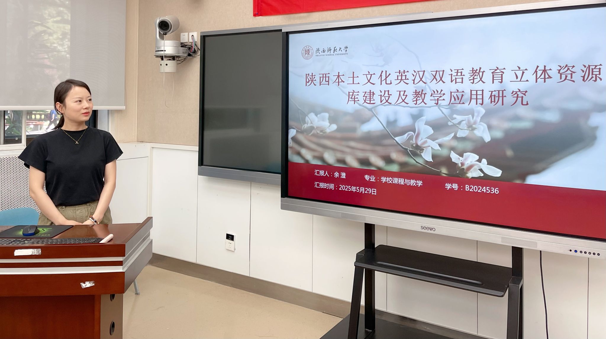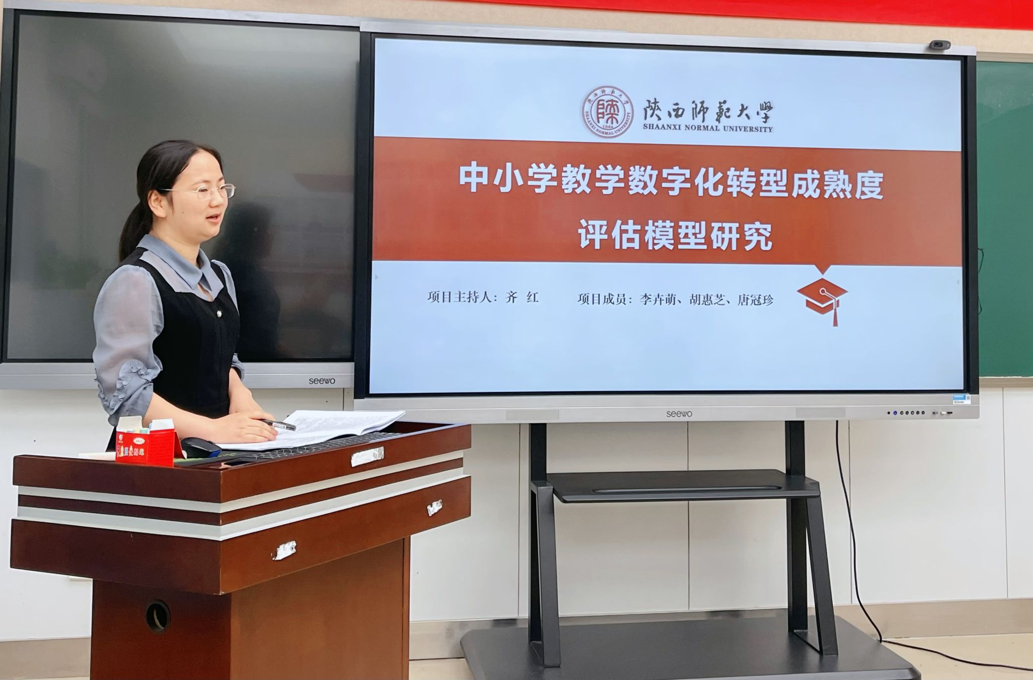 会上,余澄、李悦、齐红、李里程四位项目负责人依次对《陕西本土文化英汉双语教育立体资源库建设及教学应用研究》《习近平文化思想融入基础教育英语教学的实践研究》《基础教育公司教学数字化转型水平测评指标体系构建与应用》《生成式人工智能赋能师范生智能教育素养与胜任力培育》选题进行开题汇报。内容涵盖选题背景与意义、核心概念界定、研究内容与问题、研究思路与方法、预期成果即及规划等关键环节,既关注教育理论的深入探讨,也兼顾现实问题的实践回应。
