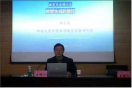 第二场由西南大学刘义兵教授于1月10日上午作题为“教育专业博士生思想生成的路径”的讲座。他从学术思想的本质内涵切入,系统阐释教育博士生从“知识积累”到“思想凝练”的进阶逻辑,并结合自身跨文化研究经历与学术成长历程,提出思想生成需立足五大关键环节,问题锚定、理论滋养、实践淬炼、对话碰撞、反思沉淀,强调教育博士生作为未来教育领域的实践引领者,需避免“为论文而论文”的功利倾向,要在学术研究中追求思想的原创性与深刻性,让学术成果真正回应教育实践的核心需求。